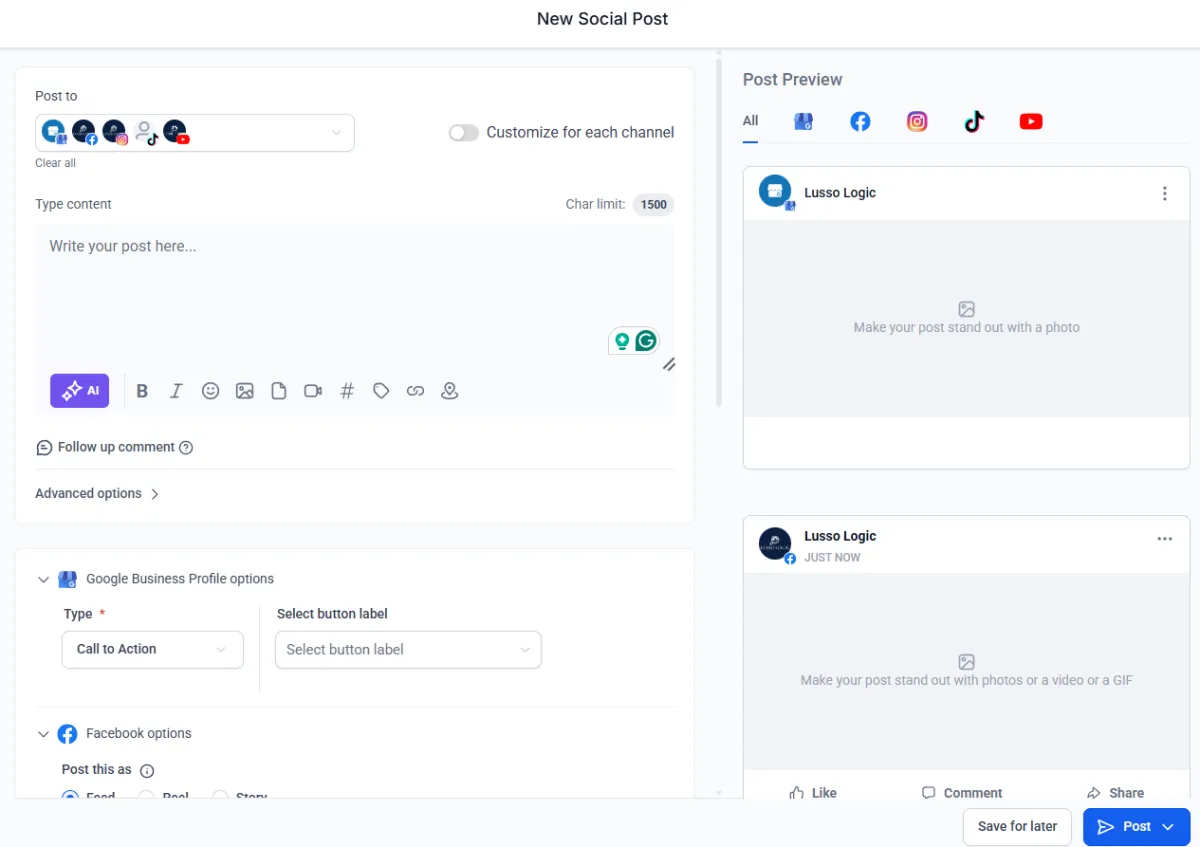 With Lusso Logic’s Social Media Suite, you can schedule posts and track analytics across every major platform. Our all-in-one dashboard saves you time and grows your online presence.